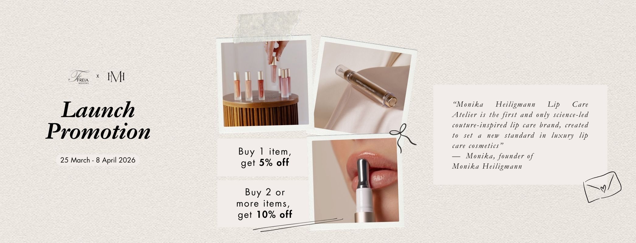 Meet Monika Heiligmann — the couture-inspired lip care line that blends natural ingredients and cutting-edge science to volumise, hydrate and perfect your lips. Now available in Singapore, exclusively at Freia247.