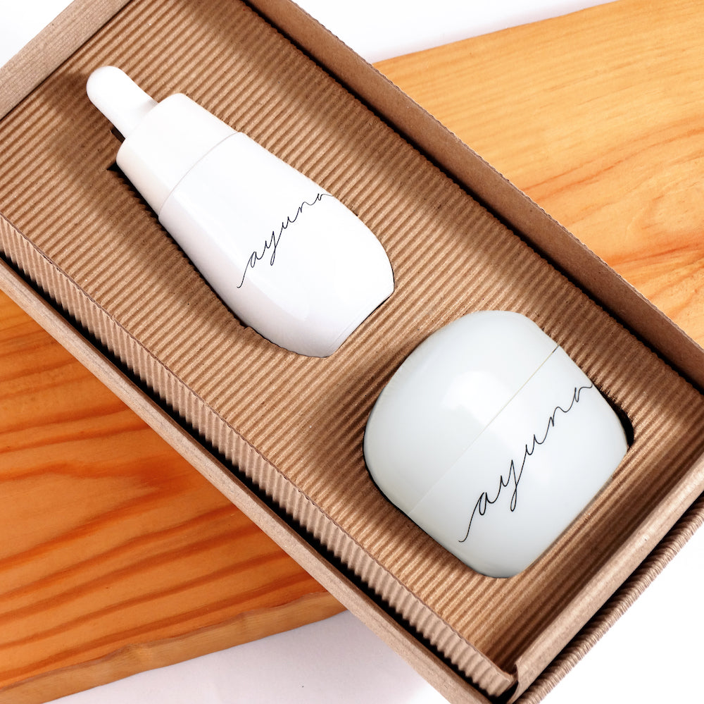 A celebration of AYUNA's best sellers. This symbolizes the connection between two powerful formulas that not only deliver the life force of botanical stem cell cultures, but also benefit from one another.