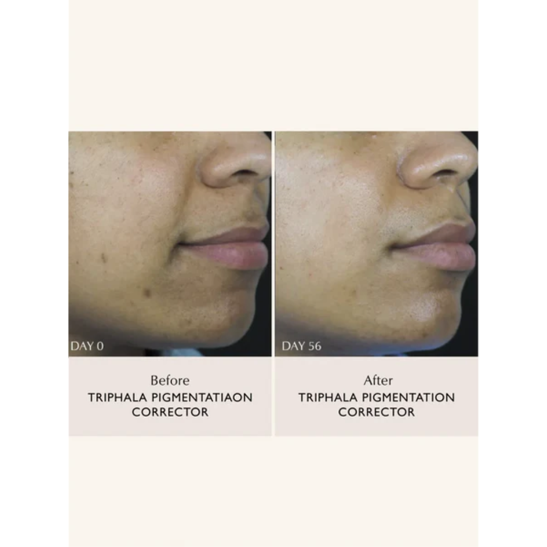 A: Triphala Pigmentation Corrector can still be used to maintain even skin tone and brighter, healthy looking skin. Triphala balances and regulates melanin in the skin which also makes it a great preventative product.