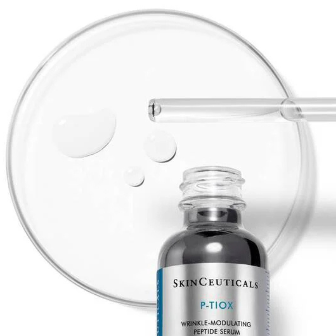 How to use: Twice daily, apply 4-6 drops of P-TIOX anti-wrinkle serum to the palm of the hand and dab onto the forehead, cheeks and chin. Blend the product into the skin. If using in the morning, apply after a SkinCeuticals vitamin C antioxidant serum and before a SkinCeuticals sunscreen.